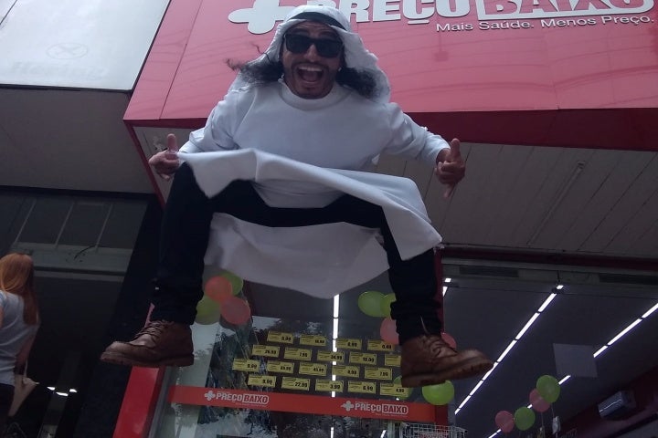“Eu sou descendente de árabe. Então as pessoas me veem todo trajado e já acham que vou explodir alguma coisa. Tentei colocar um pouco de humor nisso para fica uma coisa mais legal”, brinca.
