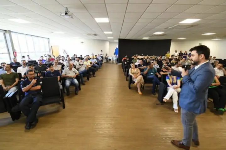 Mais de 100 homens, servidores públicos municipais, participaram da palestra “Mitos que envolvem os cuidados com a saúde do homem”, apresentada na manhã desta quinta-feira (24) pelo médico urologista Dr. Alberto Santiago Mendes Tomé.
