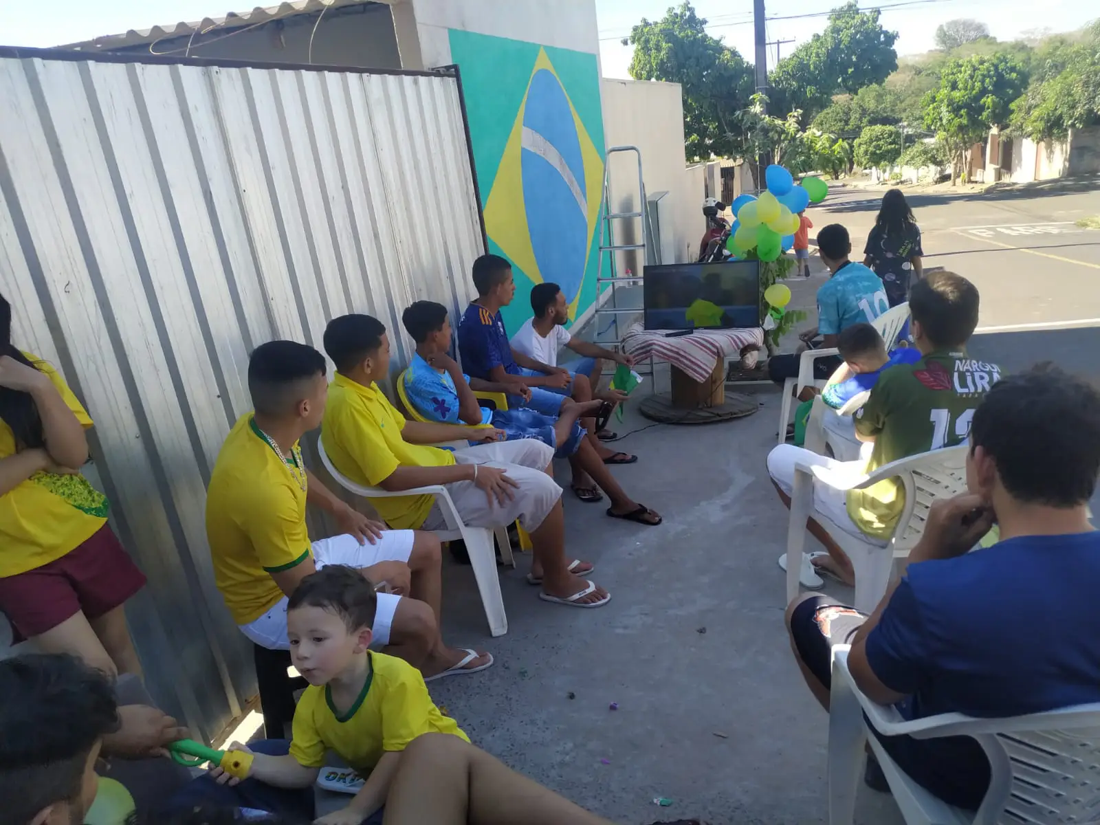 Pedro Henrique, 14 anos, entrou em contato com OBemdito para mostrar o trabalho dos jovens. Eles estão assistindo ao jogo de estreia da seleção brasileira na Copa do Mundo do Catar, contra a Sérvia, no local. Foi colocado um televisor na calçada e todos se reuniram para torcer.