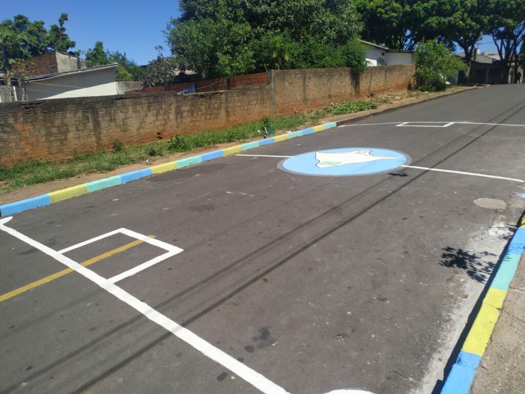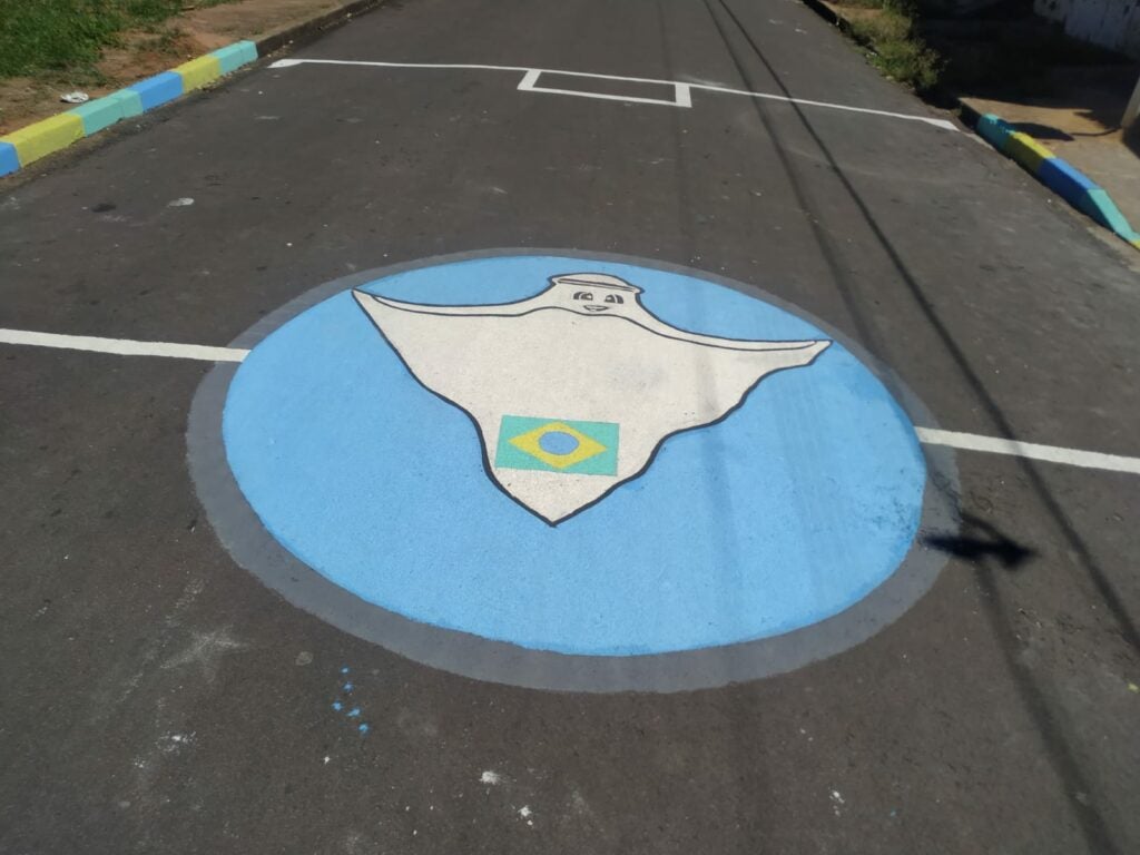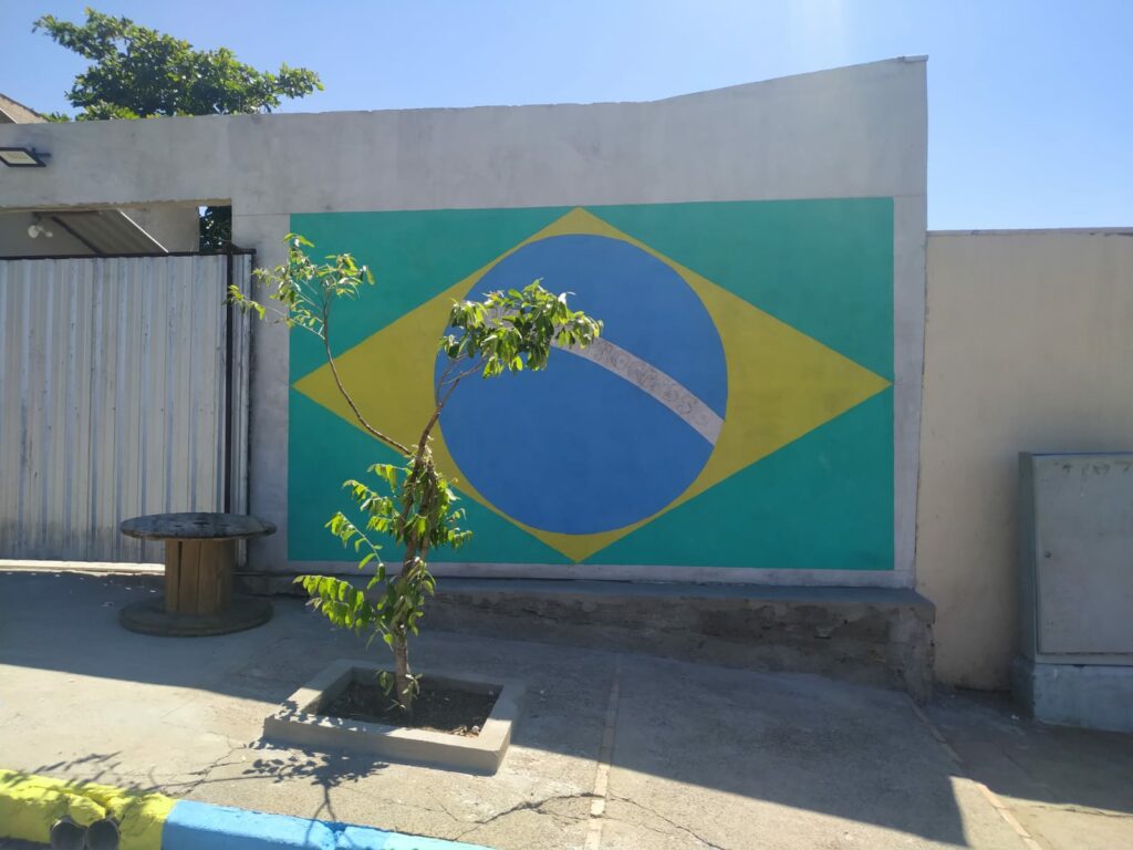 A decoração foi feita de forma coletiva e incluiu a pintura de uma bandeira do Brasil em um muro e outros desenhos na rua.