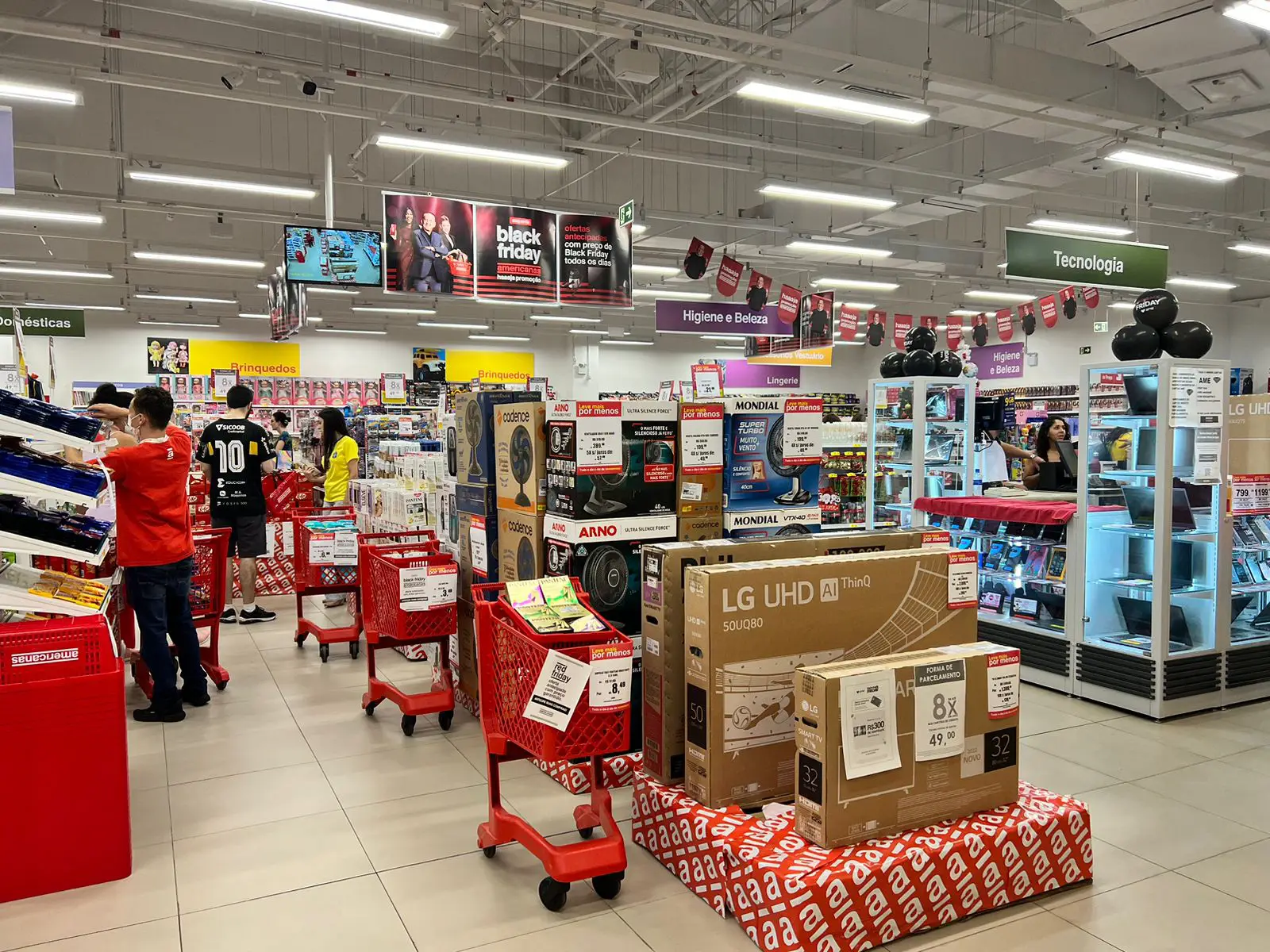 “Os clientes que estão aguardando a Black Friday para trocar de celular, comprar uma TV nova para assistir a Copa, trocar os eletrodomésticos da casa ou mesmo aqueles que querem aproveitar promoções de shampoo, coloração, chocolates, balas e biscoitos, podem ter certeza que irão encontrar descontos em todos esses produtos na verdadeira Black Friday da americanas”, diz o gerente da Americanas do Shopping Palladium, Nicolas Bruno.