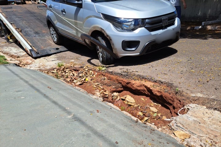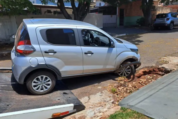 O condutor, de 40 anos, e sua esposa e proprietária do veículo, de 35, ocupavam o carro no momento do acidente. Ele explicou que estava estacionando o carro próximo à uma residência quando deixou o veículo cair dentro do buraco – que estava encoberto pela sombra de uma árvore.