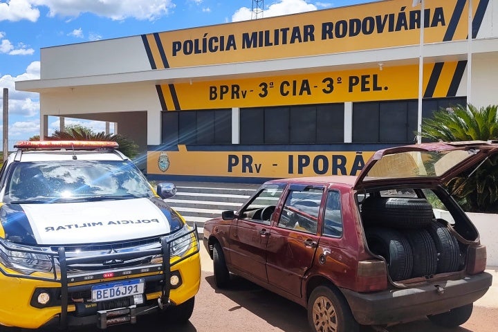 Dessa forma, a equipe deslocou até o posto de fiscalização de Iporã e confirmou haver no interior do veículo 10 bobinas de pneus, com 5 unidades em cada. Os pneus eram de diversas marcas e medidas.