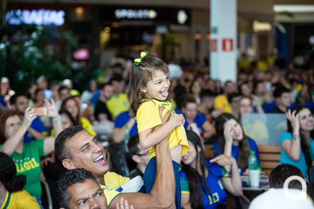 A praça de alimentação do Shopping Palladium recebeu centenas de torcedores. Um telão foi instalado no local e as empresas da praça de alimentação estão atendendo normalmente. Haverá transmissão também na próxima disputas do Brasil nesta primeira fase da Copa, na sexta-feira (2/12) contra Camarões, a partir das 16h.