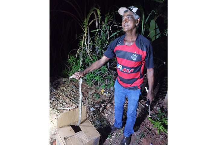 A Polícia Militar (PM) divulgou uma nota a respeito do caso. As informações são de que a cobra estava no meio da rua. O morador a recolheu em uma caixa de papelão e fez contato com policiais.