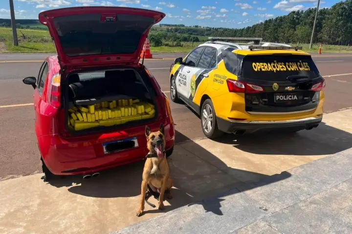 Ao se aproximar do veículo, o cão de faro Eiko mudou completamente o comportamento, indicando a possível presença de ilícitos no carro. O condutor então acelerou o veículo e fugiu da abordagem, iniciando uma perseguição que se estendeu por cerca de 1,5 quilômetros da rodovia.