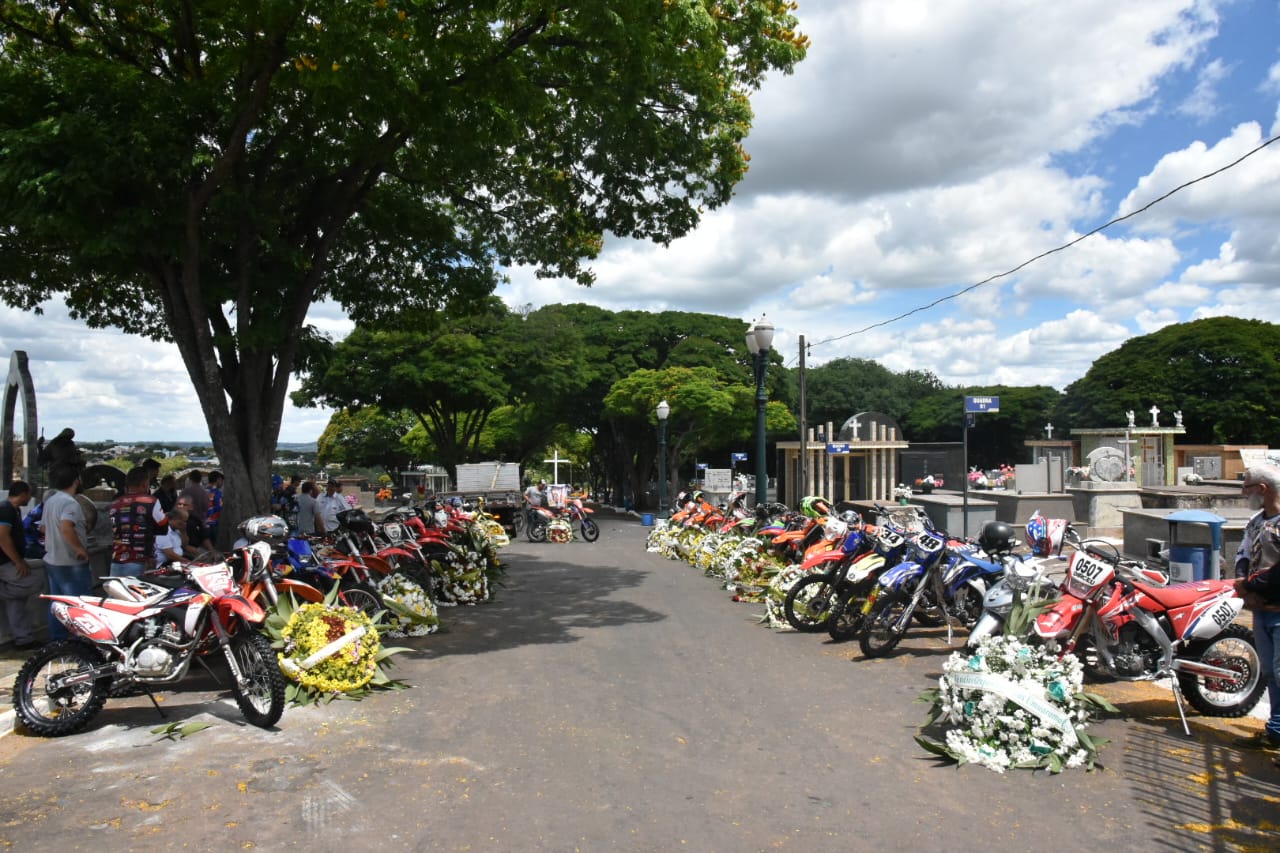 Durante o sepultamento os integrantes da Associação de Trilheiros de Umuarama se posicionaram logo após a entrada do cemitério e aceleraram suas motos enquanto o cortejo levava o caixão até o local do descanso eterno.