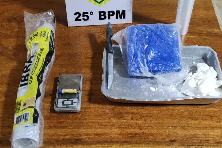 Os policiais foram até o local apontado e encontraram a sacola descrita. Dentro dela havia uma balança de precisão, copos plásticos, plástico de embalagem e 650 gramas de substância que a princípio seria cocaína – o que deverá ser comprovado através de exames laboratoriais.