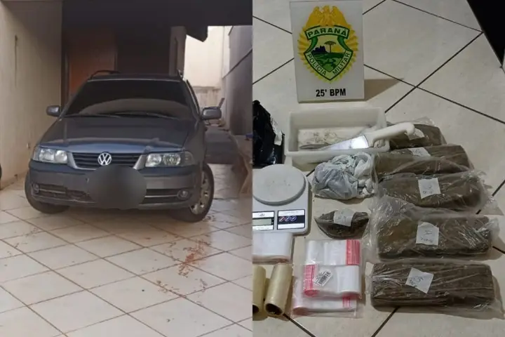 Um homem de 36 anos foi preso, no fim da tarde desta terça-feira (6), em Pérola, após ser flagrado em posse de drogas e escondendo em sua residência um veículo VW Parati que teria sido roubado em Umuarama.