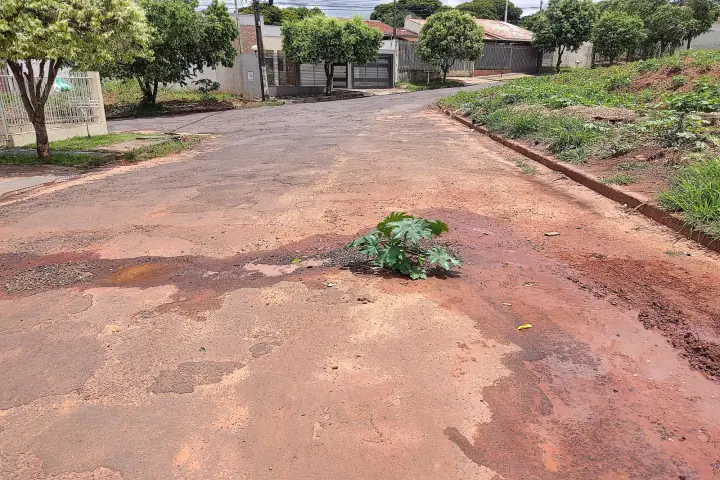 A moradora da Rua Vitor Dorta de Oliveira, no Bairro Alto da Paraná, Graziella Barbosa, entrou em contato com OBemdito para reclamar de buracos que estão consumindo parte da via.