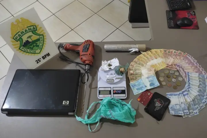 furadeira – estes dois últimos possivelmente produtos de furto -, além de materiais para embalar as drogas.