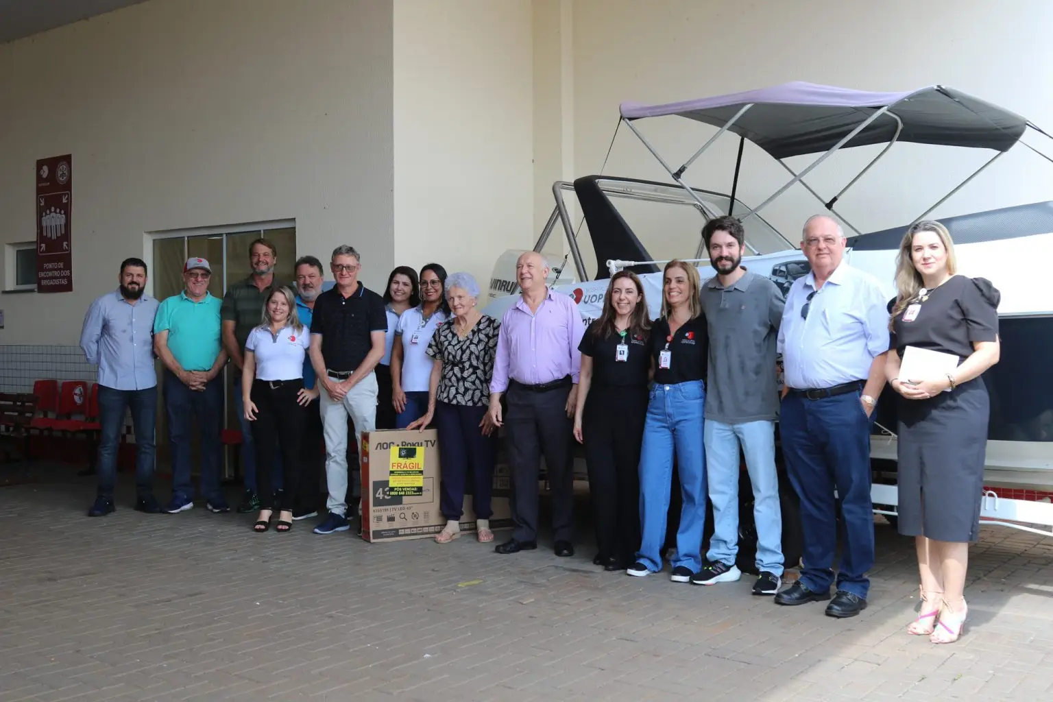 A Ação Entre Amigos é uma campanha tradicional da Uopeccan, feita anualmente para arrecadação de recursos. Além da lancha, foram sorteados um carro Fiat Mobi Easy 0km, para Silverio Weiand, de Francisco Beltrão, uma motocicleta CG 160cc para Lourdes Parcianello de David, de Cascavel, que doou novamente o prêmio para o hospital, e um televisor de 43’ para Carmela Maria Pratti, de Diamante do Oeste.