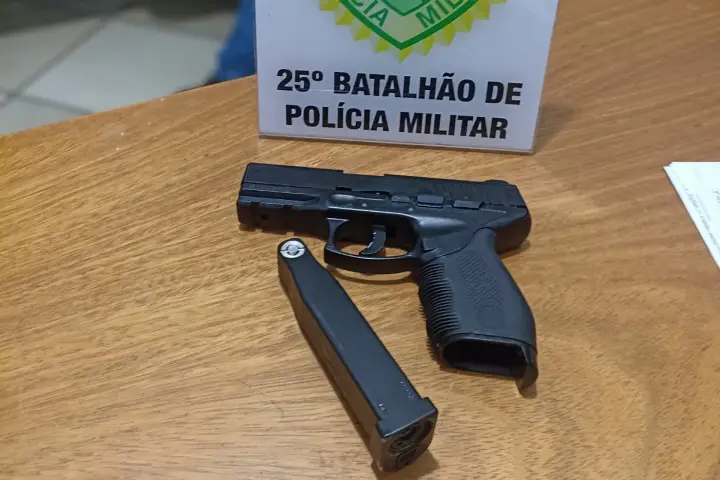 Durante vistoria no carro, os PMs encontraram uma pistola de pressão. O homem, que não quis fazer o teste do bafômetro, aparentava estar embriagado.