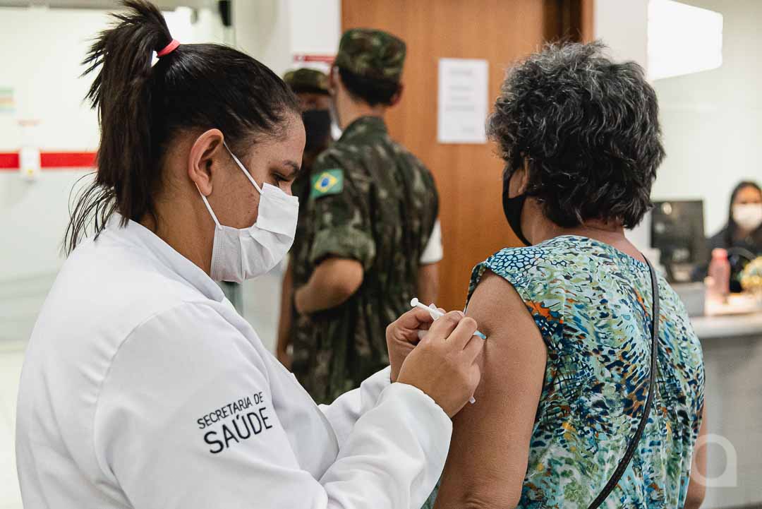 A vacinação acontece das 7h30 às 11h30 no período da manhã, e das 13h30 às 16h30 de tarde