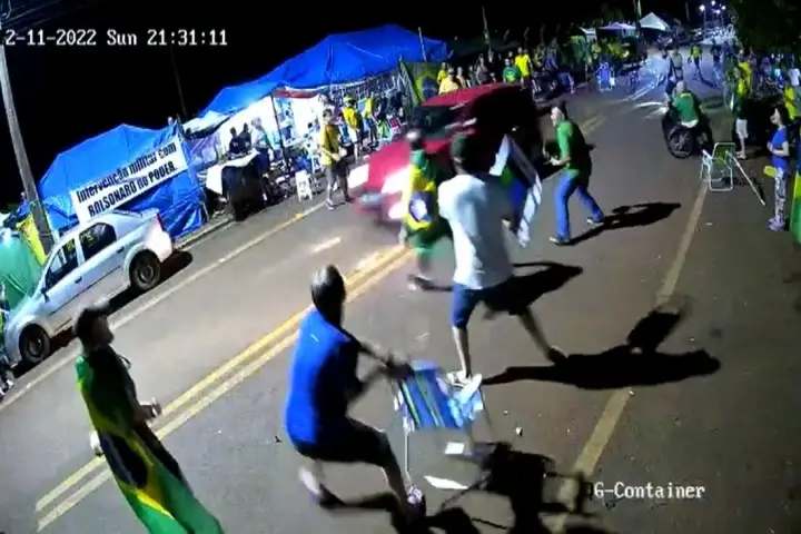 Ao perceberem o carro, o grupo saiu da frente do veículo e arremessou alguns objetos contra o automóvel. Assustados, alguns manifestantes perseguiram o carro que parou poucas quadras depois.