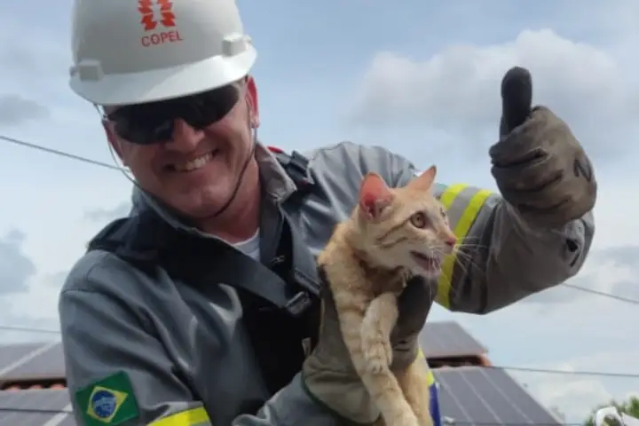 Funcionários da Copel (Companhia Paranaense de Energia) atenderam a um chamado inusitado na tarde deste domingo (11) no bairro Alto São Francisco, em Umuarama: Um gatinho que havia escalado um poste de energia e não conseguia sair do local.
