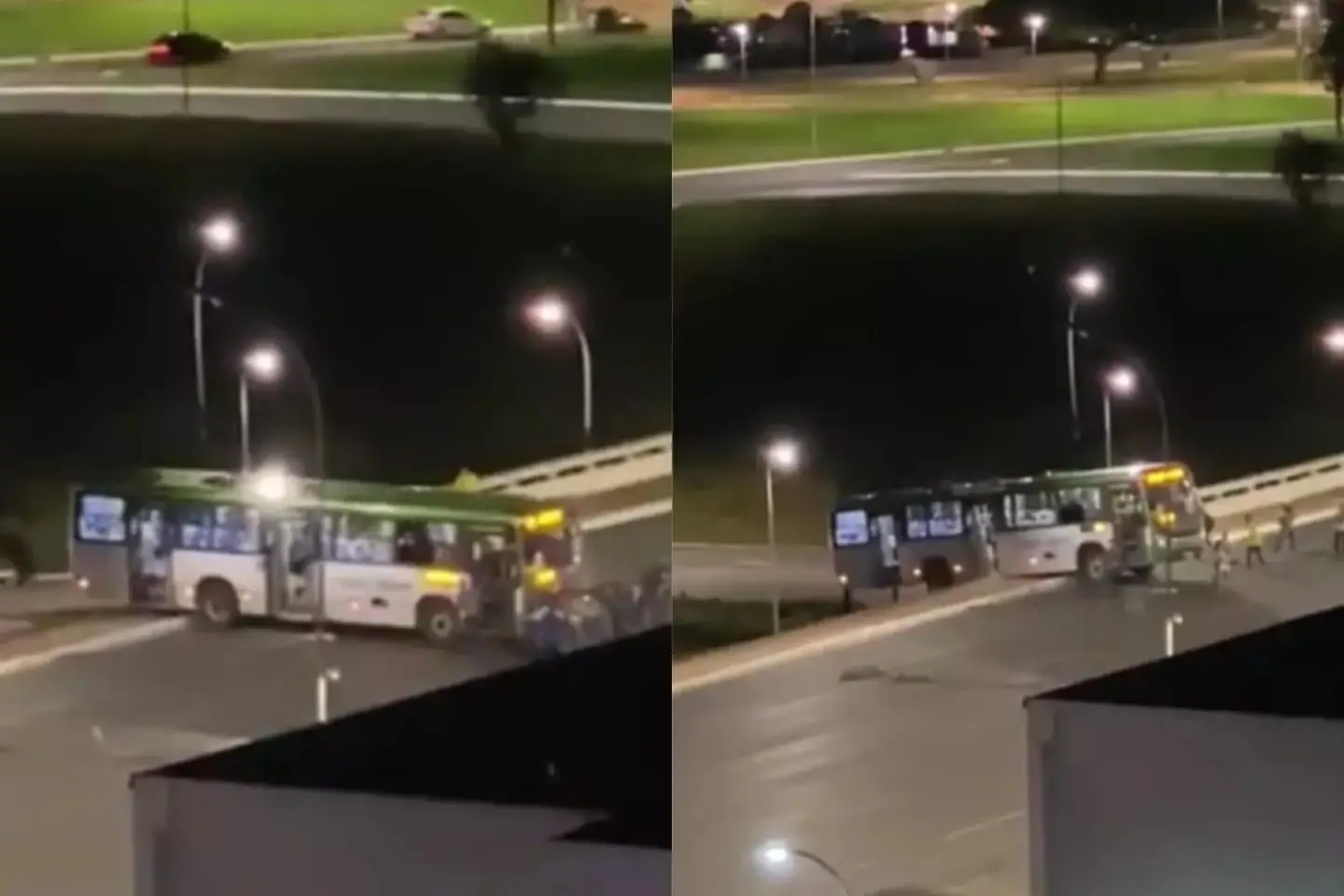 Brasília segue registrando atos extremos de manifestantes contrários ao resultado das eleições presidenciais de 2022. Na madrugada desta terça-feira (13), durante um dos focos de protesto, um grupo foi filmado tentando jogar um ônibus de passageiros de cima de um viaduto que liga as avenidas W3 Norte e Sul no Eixo Monumental.