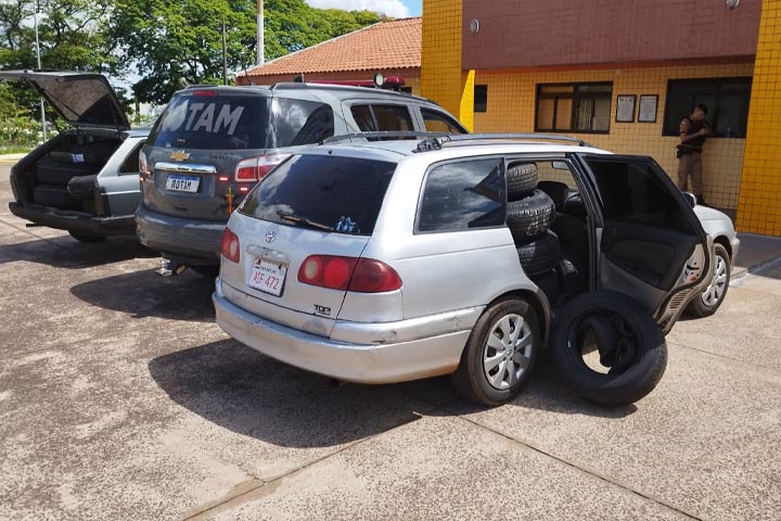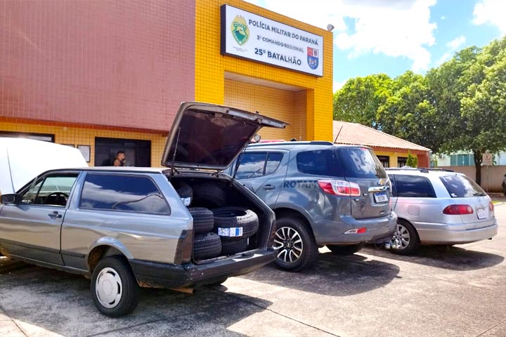 A Polícia Militar (PM) de Umuarama encaminhou um homem e realizou a apreensão de dois veículos e uma carga de 140 pneus contrabandeados na tarde desta quarta-feira (14).