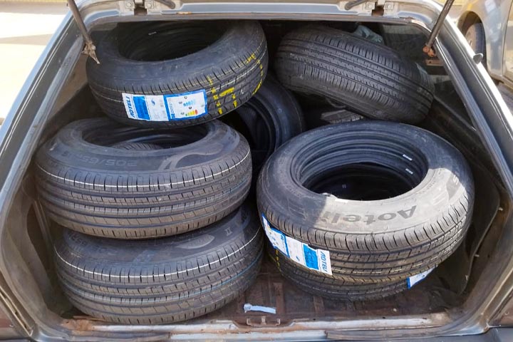 Os policiais então viram uma minivan Caldina, da Toyota do Paraguai, que estava estacionada. A equipe resolveu abordar o condutor. Chegando perto os policiais viram que o carro estava carregado com pneus. O condutor informou que levaria a mercadoria para Umuarama.