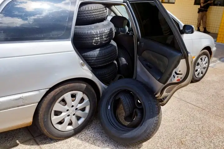 A Polícia Militar (PM) de Umuarama encaminhou um homem e realizou a apreensão de dois veículos e uma carga de 140 pneus contrabandeados na tarde desta quarta-feira (14).