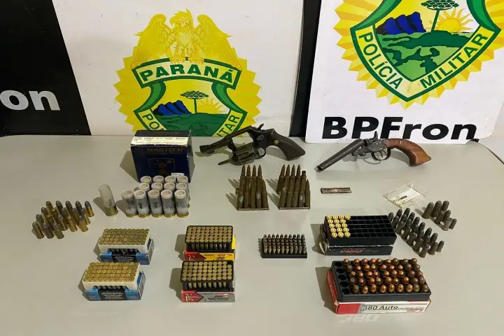 Policiais do Batalhão de Polícia de Fronteira (BPFron) apreenderam duas armas de fogo e aproximadamente 380 munições de diversos calibres, nesta quarta-feira (14), em Guaíra, oeste do Paraná.