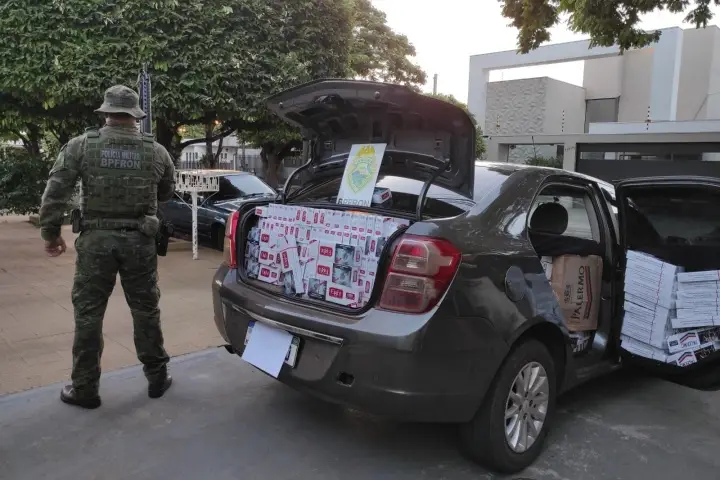 Policiais Militares do BPFron (Batalhão de Operações de Fronteira) apreenderam, nesta quarta-feira (14), um automóvel que estava transportando 1.500 pacotes de cigarros contrabandeados do Paraguai, em Umuarama.