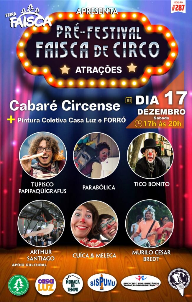 Será uma tarde agitada com o picadeiro cheio da magia do circo, com a participação de grandes artistas da região: Augusto Silva Leber, Arthur Santiago, As Meninas na Capoeira, Cuíca & Meleca, Edu Tadeu, Letícia Butierrez, Luciano Goulart, Murilo Cesar Bredt, Parabólica, Pereirinha, Sérgio Trajano, Tico Bonito e Tupisco Papipaquígrafus.