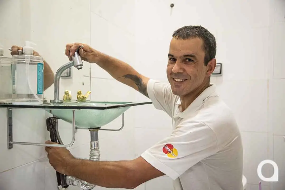 Mas vai além: é chamado também para trocar fechadura, limpar caixa d’água, instalar eletrodomésticos e… “Tem gente que me chama até para trocar lâmpada”, diz, incrédulo, interrompendo a citação da lista dos serviços que presta.