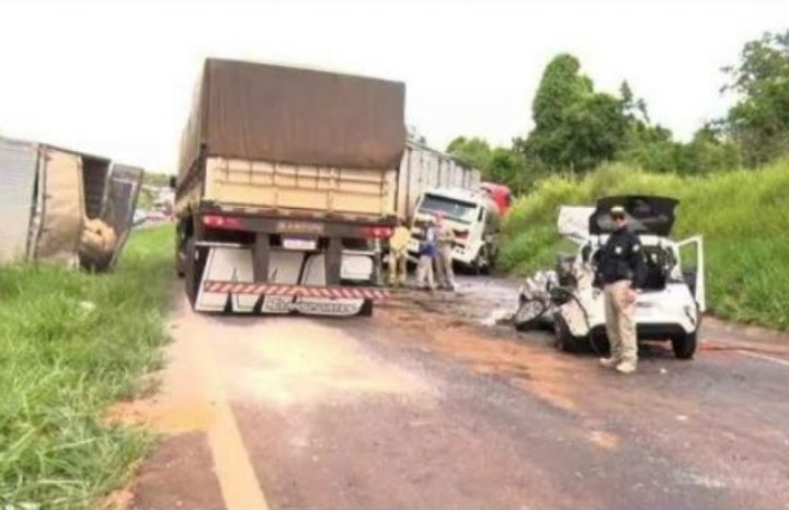 A Polícia Rodoviária Federal informou que o condutor de um caminhão Bitrem estava na BR-163 e ao acessar o Contorno Oeste entrou na alça errada, pela contramão da BR-467. Nesse momento, ele fez uma manobra para retornar causando a sequência de acidente.