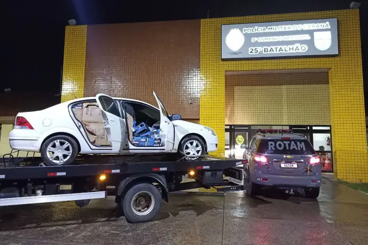 De acordo com a Polícia Militar (PM) a apreensão aconteceu após os policiais receberem informações de que o automóvel com os cigarros estaria sendo escondido no quintal de uma residência no centro da cidade.