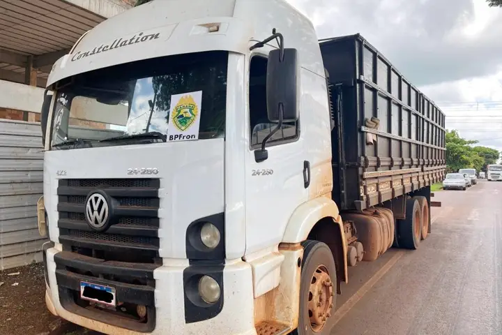 Um condutor de caminhão VW 24.250 foi preso, nesta segunda-feira (19) pelo BPFron (Batalhão de Operações de Fronteira), após ser flagrado conduzindo o veículo com placas falsas no município de Palotina.
