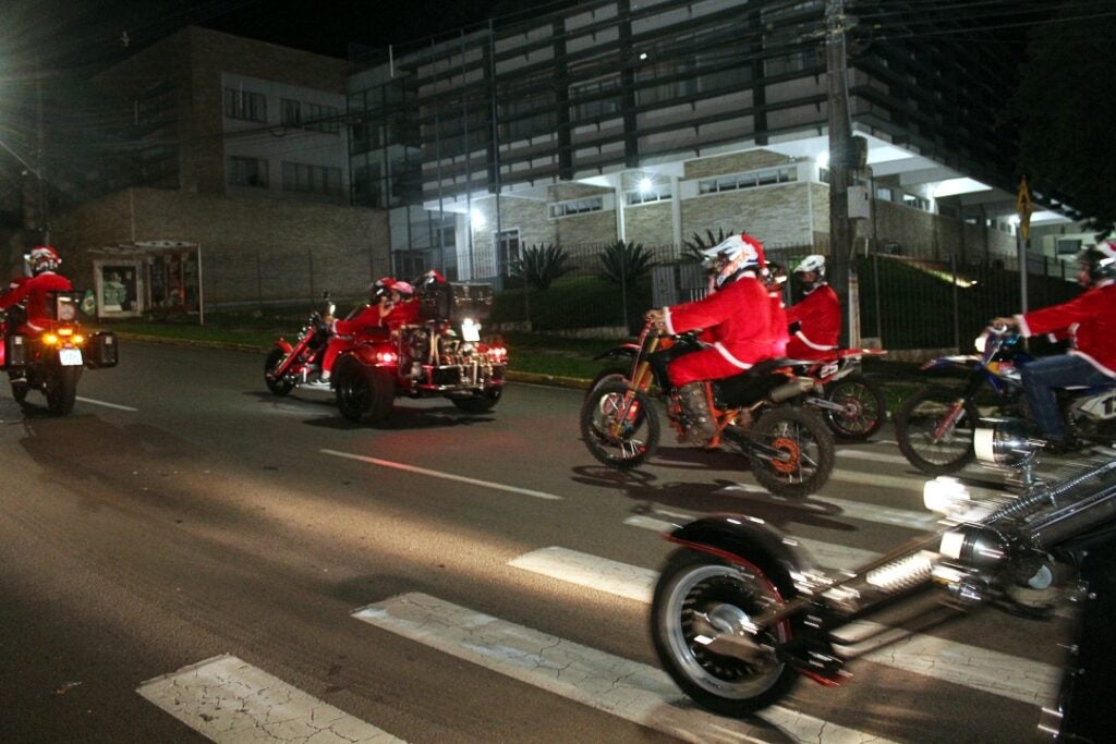Papais Noéis motociclistas roubam a cena na noite iluminada de Umuarama