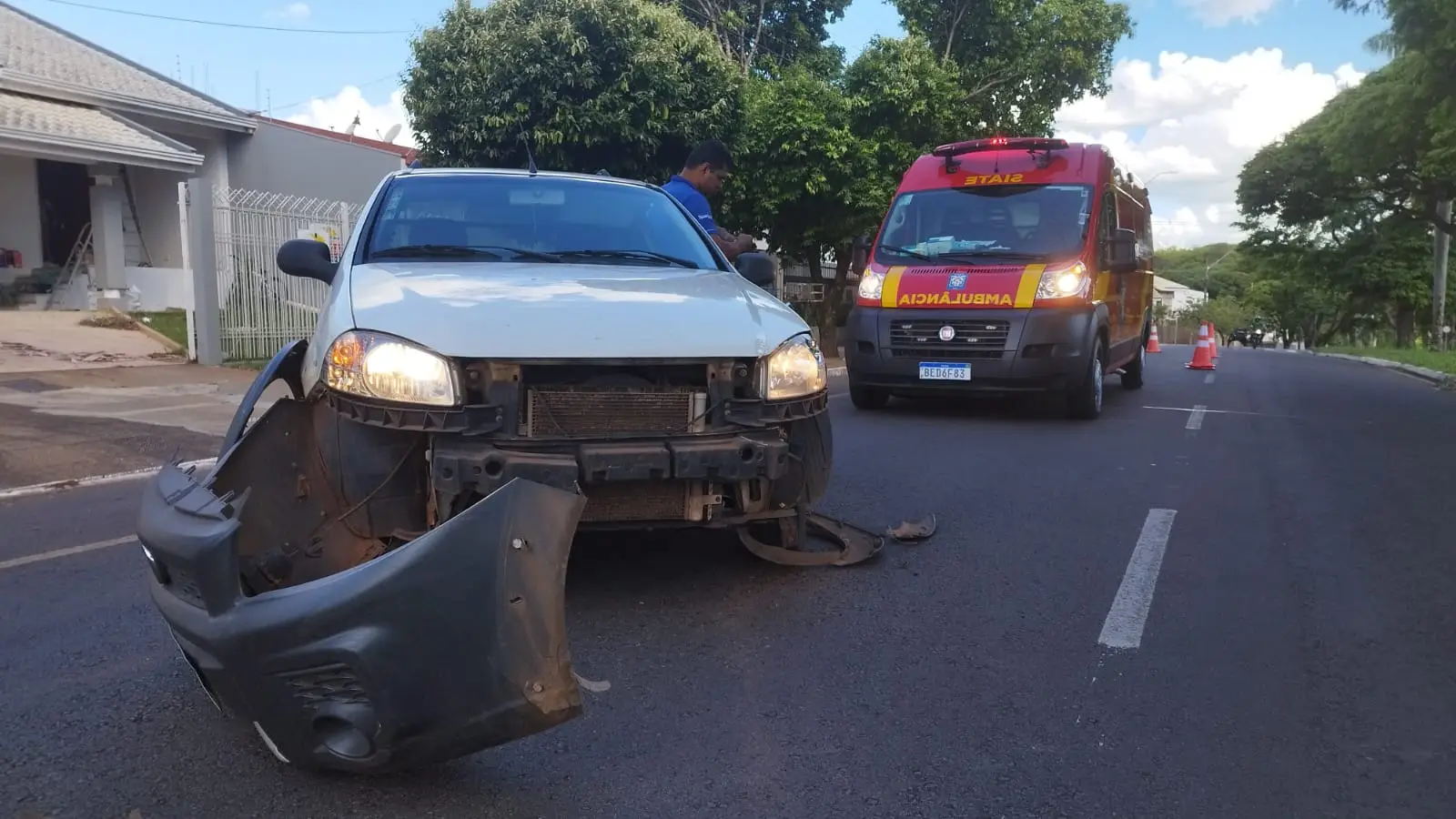 O motociclista de 43 anos (inclusive que completou idade nova ontem) estava em uma Honda CG 160 Start Ele seguia sentido Bosque Uirapuru/praça e possivelmente não viu o carro entrando no imóvel. A colisão aconteceu entre a moto e a parte do para-choque dianteiro, pelo lado esquerdo.
