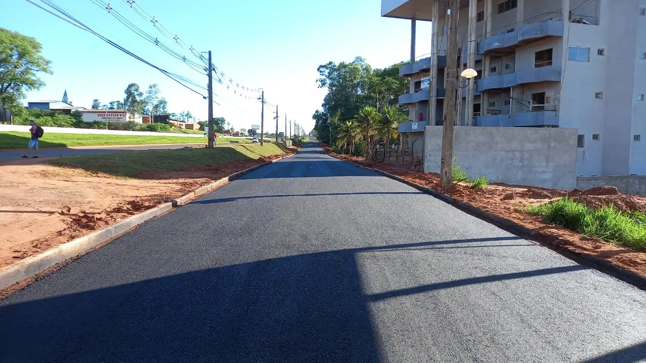 A Secretaria Municipal de Obras da Prefeitura colocou a capa asfáltica extensão da rua Jamil Hellu, paralela à marginal da rodovia PR-323, nas imediações do Jardim Aeroporto.