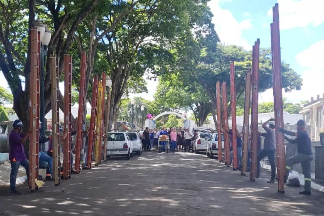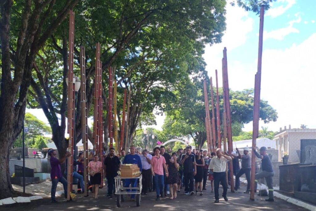 Os colegas levaram suas escadas para o interior do cemitério, fizeram uma espécie de corredor e as ergueram durante a passagem do caixão. Esta foi a forma encontrada pelos profissionais da Infratech Telecom para homenagear Jorge que morreu em um acidente de trabalho e dar condolências aos familiares.