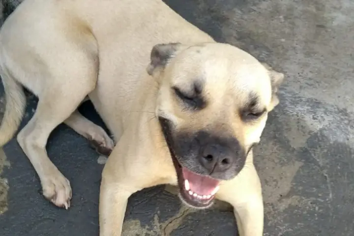 Trata-se de uma cachorra de porte médio, com pelagem caramelo-claro e o focinho preto. Vanderleia explicou ao OBemdito que ela é bastante mansinha e castrada, então possivelmente tenha tutores à sua procura.