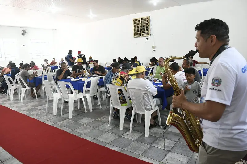 A Secretaria Municipal de Assistência Social reuniu dezenas de pessoas em situação de rua, atendidas pelo Centro Pop e entidades parceiras, para um almoço de confraternização na última quarta-feira, 21, quando foi servido um delicioso churrasco num espaço gentilmente cedido pela Associação de Recuperação dos Alcoólatras (ARA).