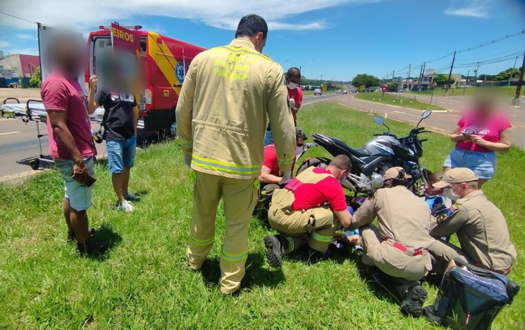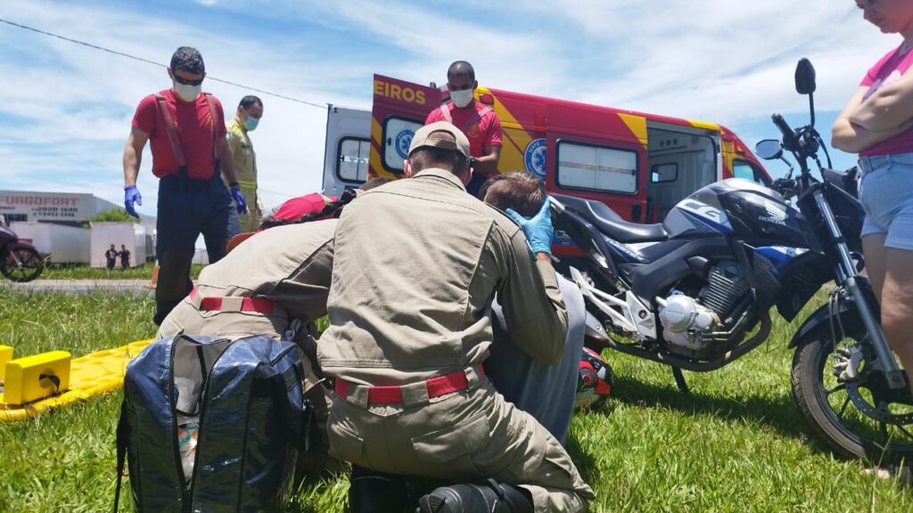 A motocicleta é uma Twister e o condutor trabalha como entregador – ele estava trabalhando no momento da queda. O rapaz trafegava entre o trevo do Parque de Exposições e o viaduto de acesso à cidade. O acidente aconteceu em frente a obra do centro de eventos.