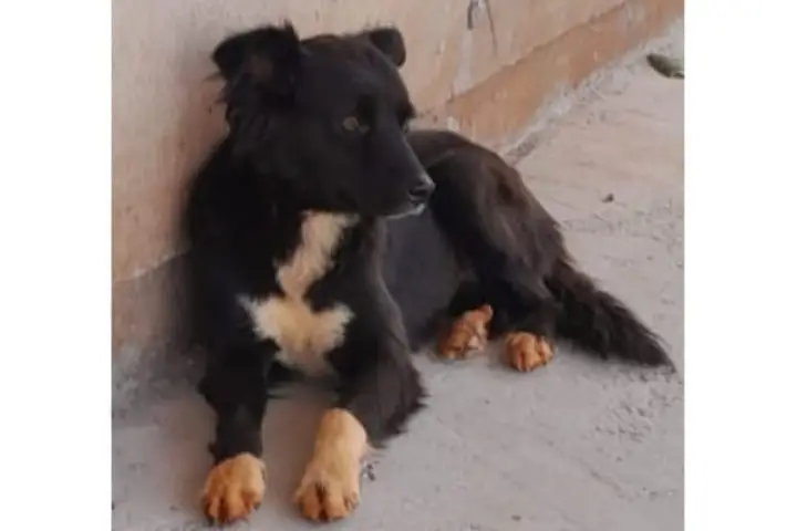 Trata-se de uma cachorrinha de pelagem média e preta, com detalhes brancos nas patas e no peito. De acordo com Vilma, a cachorra é bastante mansa.