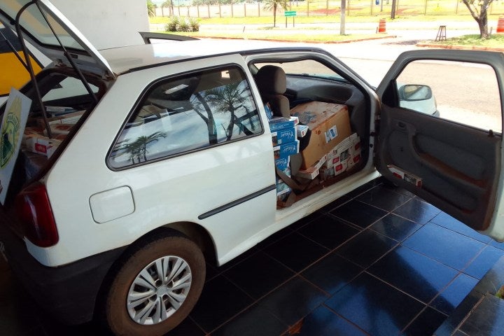 A Polícia Militar Rodoviária (PMRv) apreendeu, no fim da manhã desta sexta-feira (23), 12 caixas de cigarros contrabandeados do Paraguai que estavam sendo transportados por um VW Gol na rodovia PR-239, entre Assis Chateaubriand e Bragantina.