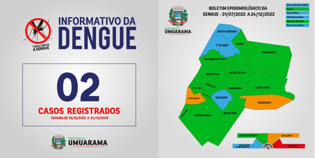O serviço de Vigilância em Saúde Ambiental, responsável pelas ações de prevenção, fiscalização e combate à dengue no município, divulgou o boletim semanal de acompanhamento da doença nesta sexta-feira, 23.