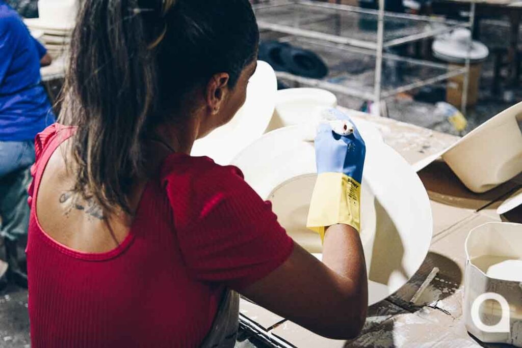 Um passeio pela fábrica dá para ter ideia da importância da Mundial: o espaço é apertado [aproximadamente 800m2] para uma produção que passa de 22 mil unidades por mês. Mais de 70 funcionários se dividem nos setores de corte, prensa, costura e acabamento, em todos imprimindo o profissionalismo que a grife exige.