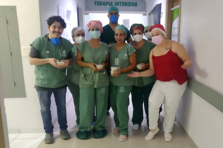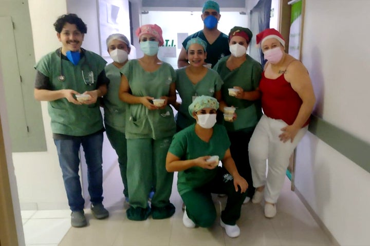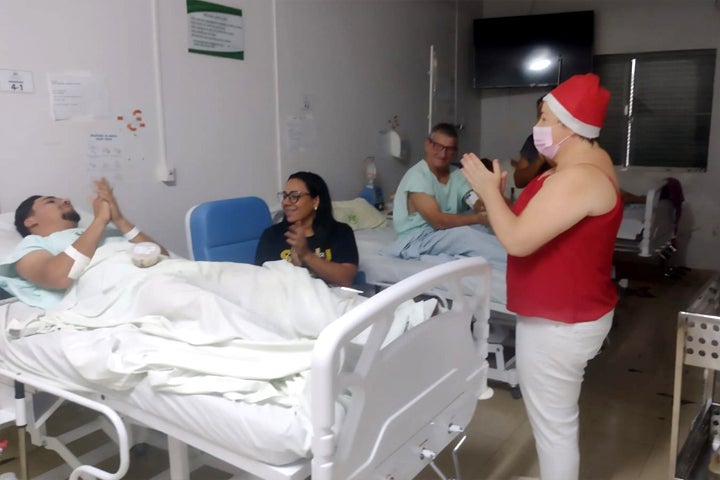 Pacientes e funcionários do Hospital Nossa Senhora Aparecida recebem bolo de pote no Natal