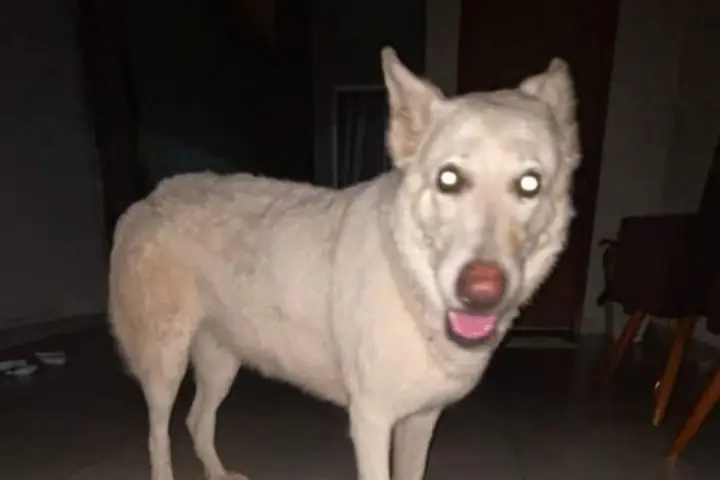 A cadela estava muito assustada e cansada, conforme disse Andreia. Ela surgiu por volta das 19 de domingo (25).