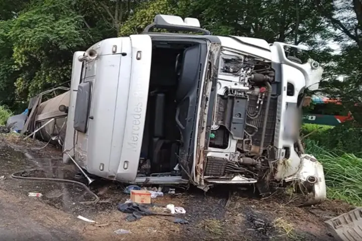 O veículo transportava uma carga de piche, que atingiu a menina e queimou grande parte do seu corpo. Ela precisou ser encaminhada de helicóptero para um hospital de Curitiba onde estava internada.