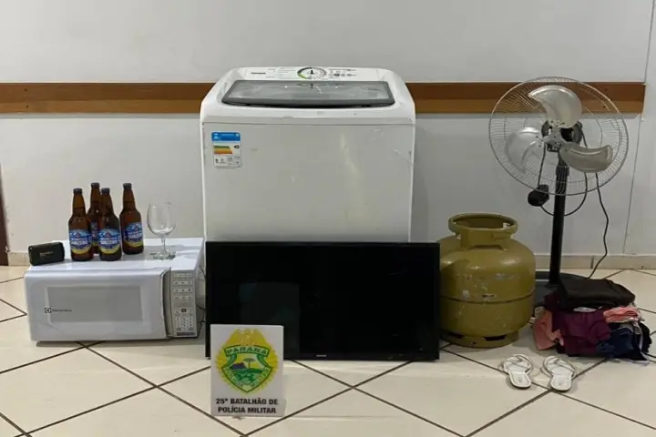 Entre os objetos levados das residências estavam um micro-ondas, ventilador, máquina de lavar, televisão de 32 polegadas, roupas e um botijão de gás.