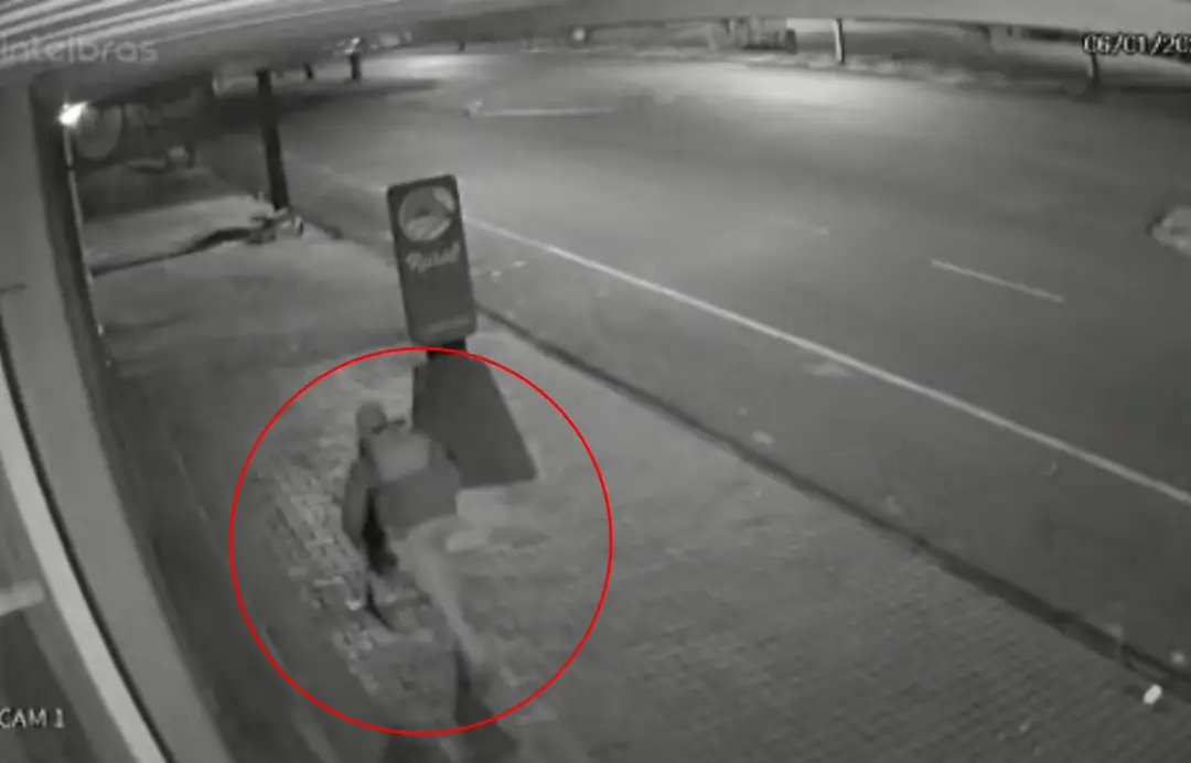 Uma câmera de monitoramento flagrou todo o crime e a ação do autor. A empresa está localizada na avenida Brasil. No local a equipe da PM constatou que a vidraça do estabelecimento estava quebrada.