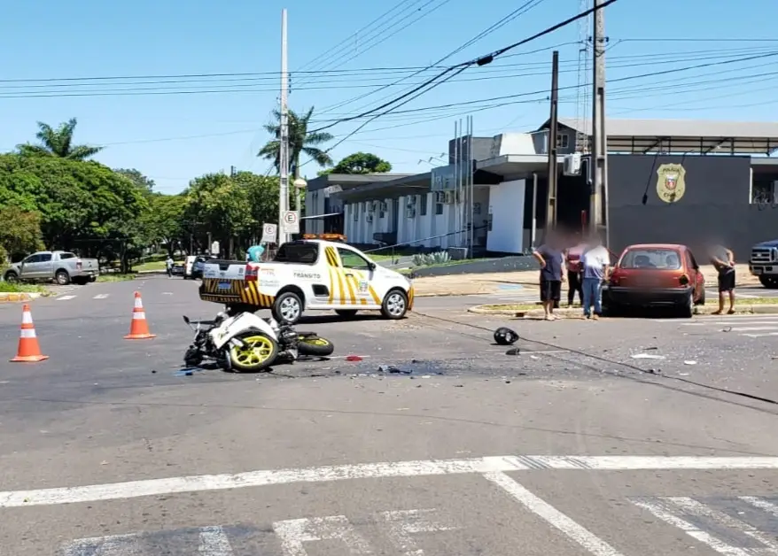 O acidente envolveu um automóvel Corsa e uma motocicleta YZF Yamaha R3. A colisão aconteceu por volta das 10h45 e o local tem semáforo. A moto atingiu a lateral do carro e o motociclista foi arremessado ao ar, por cima do veículo.
