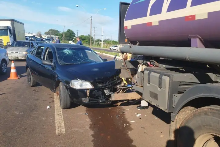 Um homem de 70 anos ficou ferido após um acidente, na manhã desta sexta-feira (13), envolvendo um Chevrolet Astra e um caminhão tanque que transportava combustível, na PR-323, em frente ao Supermercado Planalto Multi Atacado, em Umuarama.