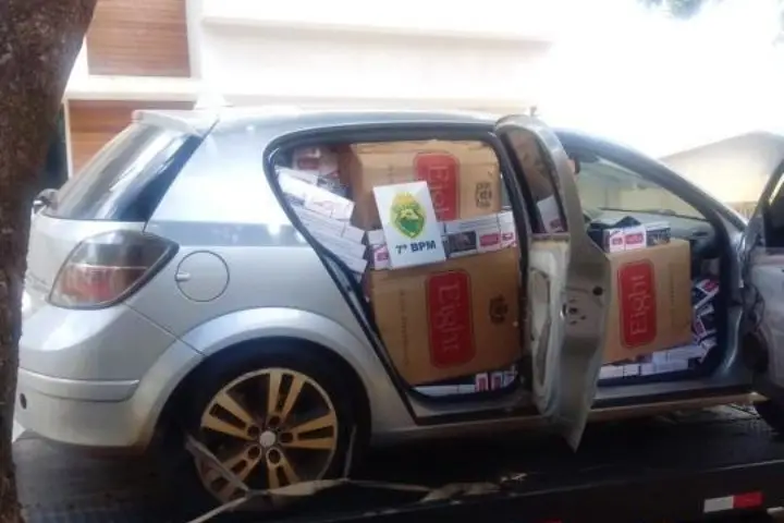Dentro do veículo os policiais encontraram uma carga massiva de 25 caixas de cigarros de marcas estrangeiras, que foram encaminhadas junto com o veículo para a Delegacia de Polícia Federal em Guaíra.